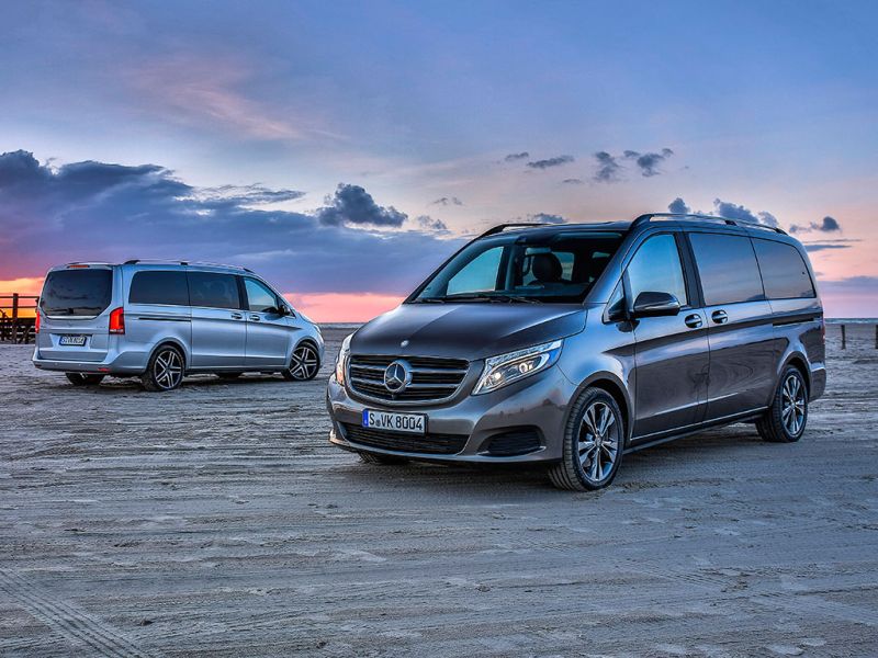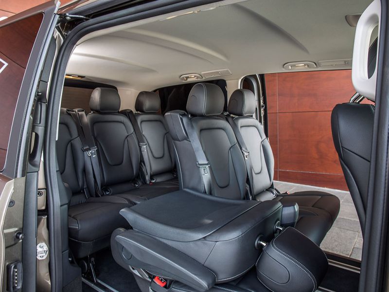 Wer über das nötige Kleingeld verfügt, kann aus der V-Klasse einen echten Luxusliner machen, der beim Einsatz im Luxushotel eine ebenso gute Figur abgibt wie im gehobenen Taxi-Geschäft. Die Geräuschkulisse ist auf Limousinen-Niveau, Fahrwerk und Motorenpalette (drei Diesel mit 136, 163 und 190 PS) sind ebenfalls top. Wie die Sicherheitsausstattung, zahlreiche Assistenzsysteme bis hin zum Seitenwindassistenten erhöhen die Sicherheit.