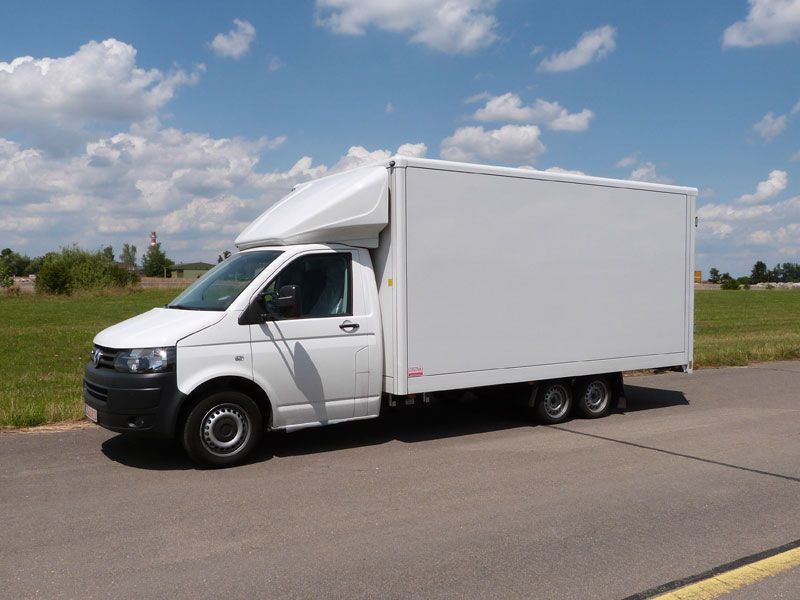 Mit dem speziell für den VW Transporter entwickelten AMC-Chassis vergrößern sich die Möglichkeiten: bis zu 4,6 Tonnen zulässiges Gesamtgewicht und eine Nutzlast von 2,5 Tonnen. Damit spielt der Transporter nutzlast- und volumenmäßig beinahe in der 7,5 Tonner-Klasse mit, punkt zusätzlich jedoch mit niedrigerem Verbrauch und geringerem Anschaffungspreis.