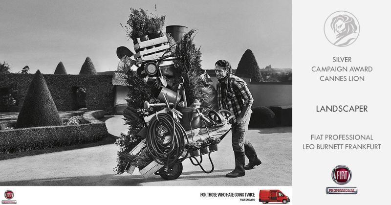 Von der Agentur „Leo Burnett Germany“ wurden 3 in schwarz-weiß gehaltene Sujets für den Fiat Ducato gestaltet, bei denen ein Gärtner, ein Gemüsehändler und ein Maler lieber große Ladungen auftürmten, als 2 Mal zu gehen. In der Kategorie „Print und Publishing“ wurde beim weltweit wichtigsten Festival der Kreativbranche dafür der „Silberne Löwe“ vergeben.