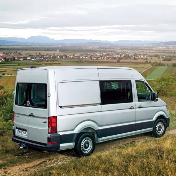 Der Großteil der Kunden ordert das Modell mit Front-, 15 Prozent entfallen auf den Hinterradantrieb, der mit Single- und Doppelbereifung zu haben ist und über ein höchst zulässiges Gesamtgewicht von maximal 5,5 Tonnen verfügt. Seine Vielfalt zeigt der neue VW Crafter aber auch bei den Karosserievarianten und den Aufbauten. So gibt es neben dem klassischen Kastenwagen auch eine Pritsche und ein Fahrgestell, die Pkw-Variante Kombi wird 2018 nachgereicht. Zwei Radstände, ebenso viele Überhänge hinten, drei Fahrzeughöhen, zwei Kabinenvarianten (Einzel- oder Doppelkabine) und drei Pritschenlängen runden das Angebot der insgesamt 69 Karosserie- und Antriebsvarianten ab. Zudem stehen verschiedenste Aufbaulösungen zur Wahl, mehr als zwei Drittel aller Fahrzeuge werden auf irgendeine Art und Weise individualisiert, um noch besser auf die Bedürfnisse der Kunden abgestimmt zu sein.
