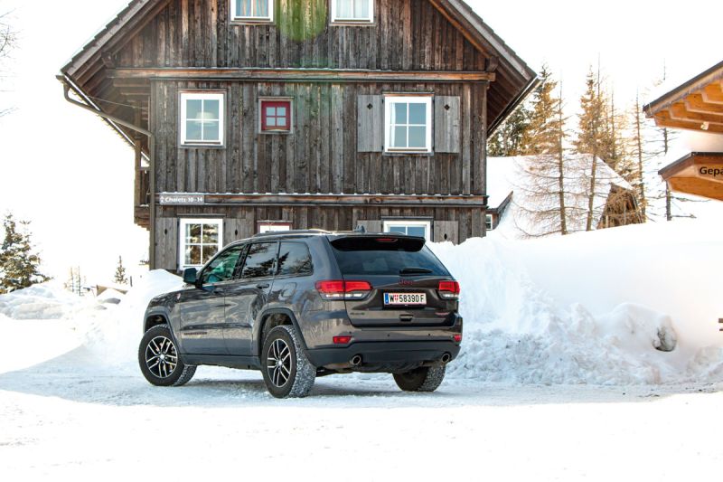 Nehmen wir Platz in der Ausstattungsstufe Trailhawk, die bereits mit sehr viel Serienmitgift aufwartet und sich durch ein markantes "Motorhauben-Tattoo" von den anderen Varianten unterscheidet. Da dieses unabhängig von der Fahrzeuglackierung in Mattschwarz gehalten wird, fällt es bei unserem grauen Testwagen zugegeben aber kaum auf. Was man vom Grand Cherokee als solchem nicht behaupten kann, nicht zuletzt der bullige Kühlergrill zieht die Blicke auf sich. Und dennoch ist der große Jeep kein Angeberund schon gar kein Blender. Das erfährt man spätestens bei der Teilnahme an einem Event der Jeep Owners Group, die Mitgliedschaft ist beim Neuwagenkauf übrigens ein Jahr kostenlos.