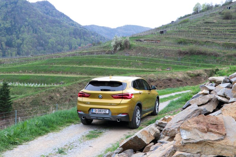 Es läuft bei BMW. Die Bayern zählen weltweit zu den profitabelsten Autoherstellern und haben auch national ein starkes Jahr 2017 hinter sich. Mit knapp 19.000 Fahrzeugen lag die BMW Group inklusive Mini klar vor Audi und Mercedes. Erfolgreichstes Modell war mit 4.199 Einheiten der X1. Womit die Vorzeichen für den sportlichen Bruder X2 mehr als gut stehen. Der verzaubert jung und alt, wie wir selbst feststellen durften, schon im Stehen, die sportliche Linienführung wird von der "M Sport X"-Ausführung nochmals unterstrichen, das Galvanic Gold Metallic rundet das Package perfekt ab.