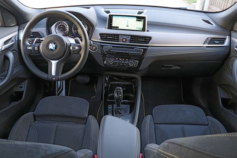 Mit einer Länge von 4,35 Metern ist er immerhin 13 Zentimeter kürzer als der X1. Schwerer ins Gewicht fällt die sieben Zentimeter niedrigere Dachlinie, die den X2 zwar deutlich sportlicher aussehen lassen, dafür aber Kopffreiheit im Fond kosten. Abgesehen davon geht"s aber überraschend luftig zu, zumindest vier Erwachsene können komfortabel reisen. Der Kofferraum ist mit 470 bis1.355 Litern etwas kleiner als beim X1, aber immer noch ausreichend. Das Cockpit kennt man ebenfalls vom größeren Bruder mit der kleineren Nummer, im X2 wurde es im Detail -Stichwort Ziernähte -noch einmal verfeinert.