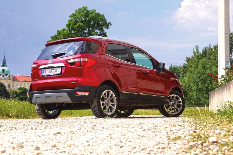 In Südamerika sieht man Fords Ecosport ähnlich häufig wie hier den VW Golf. In Europa konnte sich das Weltauto -er wird mittlerweile für Europa in Rumänien gebaut -bisher noch nicht gänzlich etablieren, was aber vor allem an der teils dürftigen Verarbeitungsqualität der Vorgängergenerationen lag, die in Indien vom Band liefen. Doch damit ist jetzt Schluss, Ford hat in puncto Materialanmut, Spaltmaße und Ergonomie mit dem jüngsten Facelift sämtliche Hausaufgaben gemacht. Und in der Tat, der Innenraum hält nun, was das kleine SUV von außen verspricht. Darüber hinaus ist mit der neuenMittelkonsole und dem großen Touchscreen auch endlich die Knopferlarmada passé, die einen ob der Vielfalt schon mal ziemlich ratlos zurückließ. Weitere Neuerungen: Das fix am Heck montierte Reserverad ist Geschichte (wem"s gefällt, gibt"s noch optional!) und zwecks besserer Vermarktbarkeit in den Alpenländern ist der Ecosport auch erstmals mit Allradantrieb erhältlich. Den gibt"s allerdings nur in Verbindung mit dem 125 PS starken Diesel. Und weil gerade in dem SUV-A-Segment immer mehr zum Benziner greifen, haben wir uns für den Test den stärksten Otto-Motor mit 140 PS, Sechsgang-Handschaltung, Frontantrieb und in der Top-Ausstattung "Titanium" entschieden.