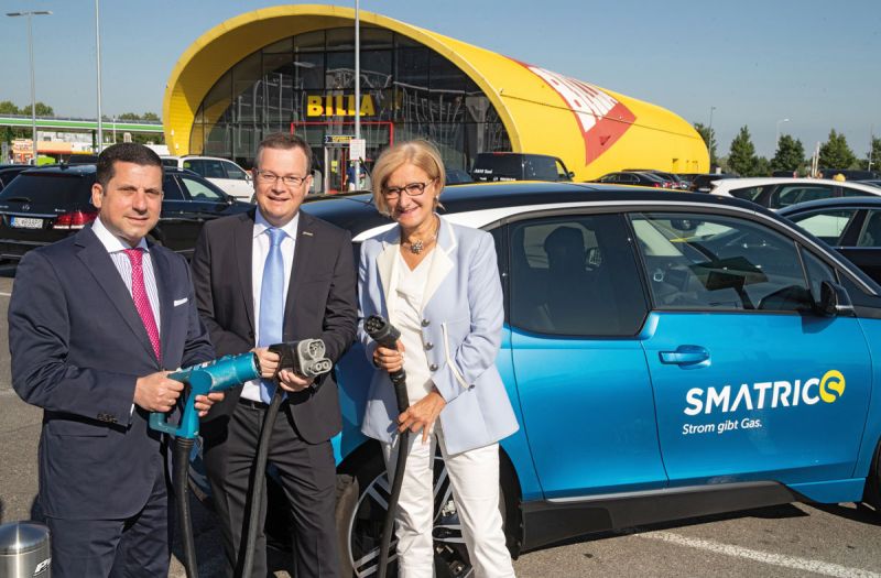 Smatrics treibt den Ausbau der Elektroauto-Ladeinfrastruktur voran. Vor Kurzem wurde in Wien die erste 350-kW-Ultra- Schnellladestation Österreichs eröffnet. Dazu gibt es bereits 142 Ladestationen auf REWE-Supermarkt-Parkplätzen.