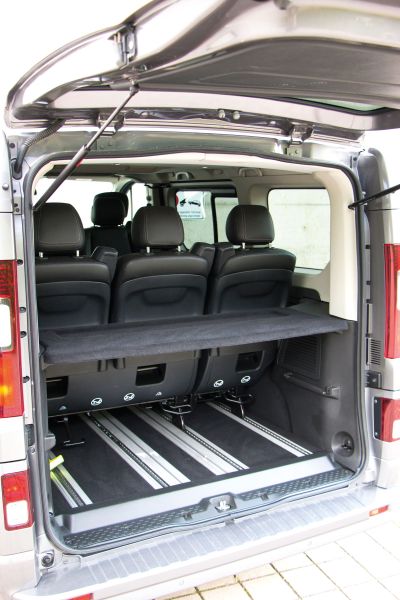 Das Topmodell SpaceClass basiert auf dem gehobenen "Dynamique"-Niveau und beinhaltet Annehmlichkeiten wie ein Navi, abgedunkelte Scheiben, Teppichboden, Klimaautomatik, LED-Tagfahrlicht, ein Schienensystem für die Sitze in Reihe zwei und drei, Alufelgen und vieles mehr, Leder gibt"s dann noch optional. Motorisch stehen zwei Optionen zur Wahl, ein 1,6-Liter-Twin-Turbodiesel mit 125 oder 145 PS, der auch unser Testauto angetrieben hat und mit guten Fahrleistungen sowie einem akzeptablen Praxisverbrauchvon 7,5 Litern punkten konnte. Wie bei allen Trafic- Modellen gibt es den SpaceClass in zwei Längen mit einem Kofferraum von 673 bzw. 1.084 Litern, wer die Sitze ausbaut, schafft über 5.000 Liter. Je nach Radstand und Motorisierung liegt der Preis zwischen 45.100 und 48.250 Euro brutto.