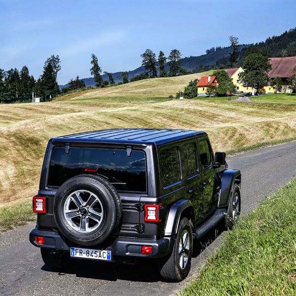 Gleich drei neue Dachkombinationen hat Jeep im Angebot: ein Stoffdach, das auf Knopfdruck fast über die ganze Länge zu öffnen ist, ein Hardtop mit drei abnehmbaren Teilen und das sogenannte Sunrider-Rooftop, das in vielen Bereichen verbessert wurde. Das Thema Sicherheit bekommt nun einen größeren Stellenwert. Totwinkel-Warner und hintere Querverkehrserkennung gehören ebenso zu den Neuigkeiten wie die Rückfahrkamera mit dynamischem Führungsraster. Volle Handyanbindung gibt es bereits mit dem 7-Zoll-Infotainmentsystem, die 8,4-Zoll-Variante holt mit einer Reihe an Apps noch mehr für den Fahrer heraus.