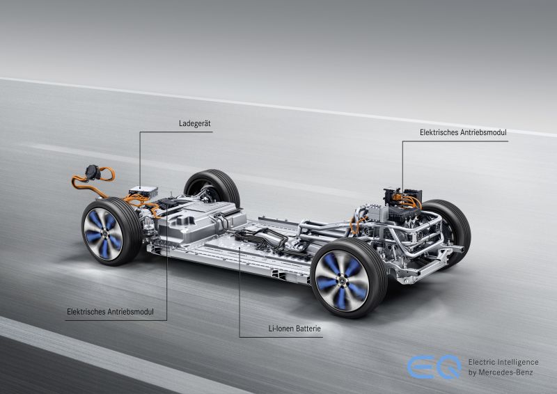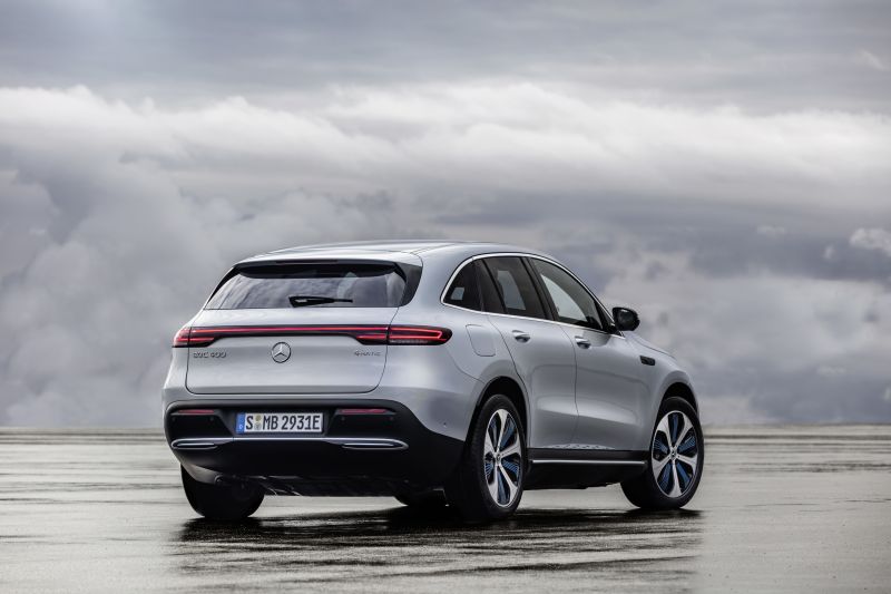 Optisch ist er schon mal ganz klar als Mercedes-Benz-Vertreter zu erkennen. Die Verwandtschaft zum GLC ist offensichtlich, basiert er doch auf der gleichen Plattform. Doch dann sind da diese üppigen Rundungen, die gestreckte Dachlinie, die coupéhaften Züge und der auffällige Grill, das sogenannte „Black Panel“ mit dem großen Stern. Die prägnante Lichtsignatur vorn und hinten vermittelt einen Hauch von Captain Future. Doch ganz so futuristisch gibt sich der 2,4 Tonnen schwere Stromer dann doch nicht. Diese Zurückhaltung beim Exterieur-Design ist sicher keine schlechte Strategie, denn die Musik des Autos spielt sich im Inneren und unter dem Blech ab. Das erste Elektro-SUV der Schwaben verfügt an der Vorder- und der Hinterachse über je einen eigenen elektrischen Antriebsstrang. Zusammen bringen es die Elektromotoren auf eine Systemleistung von 408 PS. Das maximale Drehmoment liegt bei 765 Newtonmeter. Die für das Fahren benötigte Energie speichert der EQC in einer Lithium-Ionen-Batterie mit einer Kapazität von 80 Kilowattstunden im Wagenboden. Die Reichweite beträgt 450 Kilometer. Erfahrene Elektro-Fahrer wissen: In der Praxis dürften es kaum mehr als 350 Kilometer sein. Da haben andere mehr Reichweite. Innerhalb von rund 40 Minuten soll der Akku an einer Schnellladestation von zehn auf 80 Prozent geladen sein. In 5,1 Sekunden beschleunigt der EQC von null auf 100 km/h.