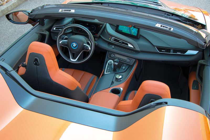 Das Verdeck wirdübrigens in nur 15 Sekunden elektrisch nach hinten geklappt, dem Open-Air-Feeling steht dann nichts mehr im Wege. Interessant: Addiert man den Stauraum hinter den Sitzen und im Kofferraum, kommt man mit 188 Litern sogar auf 34 Liter mehr als beim i8 Coupé. Der BMW i8 Roadster ist ab 161.600 Euro zu haben und damit rund 15.000 Euro teurer als die geschlossene Version.