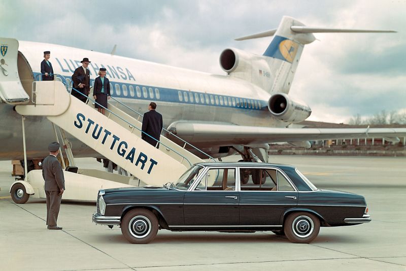 Als 1965 der Mercedes W 108, der als "250 S/SE und 300 SE (bis zu 170 PS) auf den Markt kam und als Vorbote der S-Klasse gilt, war das tatsächlich ein anderes Modell mit einer anderen, gestreckten Karosserie und nicht nur eine stärkere Motorisierung in ähnlicher Verpackung. Wie auch bis dahin die "Heckflosse"(die erst 1972 vom legendären "Strich-8" abgelöst wurde, der kompakter geriet, dessen Form aber Designansätze vom W 108 (bzw. der Langversion W 109) wie der "S" werksintern hieß, aufnahm. Mit dem Motor des Mercedes 600 topmotorisiert, gab es dann ab Ende 1967 den 300 SEL 6,3. Der wurde von AMG nochmals getunt: Mit auf 6,9 Liter aufgebohrtem Motor lehrte der orange-rote Rennwagen Sportlern wie Jaguar E und Porsche 911 das Fürchten. Sein Erkennungszeichen waren die auch als Ersatzteil erhältlichen USA-Halogenscheinwerfer, die gern zum Hochrüsten gekauft wurden.