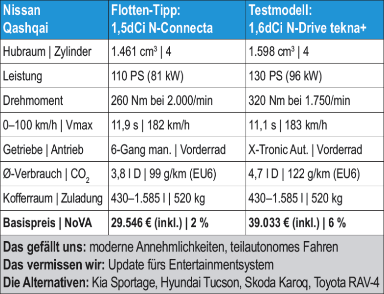 Aber halt: „Teilautonom“ muss es korrekterweise heißen, alles darüber hinaus ist einstweilen noch Zukunftsmusik. Trotzdem: Der bei Nissan „Propilot“ getaufte Abstandsregeltempomat mit Stau- und Lenkassistent realisiert im täglichen Getümmel spürbare Erleichterung. Im Zusammenspiel mit der stufenlosen X-Tronic, die – um den seit den Tagen der ersten Prius-Generation nicht verstummen wollenden CVT-Miesmachern den Wind aus den Segeln zu nehmen – Schaltstufen vorgaukelt, funktioniert das auf Höhe der Zeit ganz tadellos. Der kräftige 1,6er-Diesel trägt das seinige zum teilautonomen Gleiten bei und lässt auch dann kein übermäßiges Geheule vom Stapel, wenn volle Beschleunigung abverlangt wird. Diese endet auf der deutschen Autobahn bei knapp über 180 km/h und selbst in diesem Bereich fühlt man sich noch sicher. Langstrecken bei hohem Tempo sind natürlich nicht das Lieblingsfach des Qashqai, seine Stärken spielt der praktische und komfortable Wagen im täglichen Gewühl zwischen Heimatherd und Hamsterrad aus. Dass sich im japanischen Autobau das Knopferl als Mittel zum Zweck ungebrochener Beliebtheit erfreut, hat auch seine Vorteile.