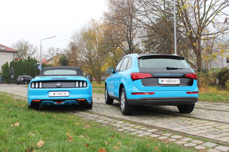 Peter und Sigrid Peer sind beruflich viel unterwegs, über Autobahnen und Bergstraßen, bis zu 50.000 Kilometer pro Jahr. Auf Sicherheit und Verlässlichkeit ihrer Autos legen die beiden großen Wert. Ein Auto war aus diesem Grund stets ein allradgetriebenes, das andere ein wendiges Stadtauto. Und: „Wir verbringen viel Zeit auf der Straße“, so Peter Peer, „das Fahren muss für uns auch einen Funfaktor haben.“ Heißt konkret: Eine ordentliche Motorisierung ist für beide das Um und Auf. Weiteres Kriterium ist eine brauchbare Kofferraumgröße, da für die Trainings meist einiges an Equipment zu transportieren ist. Aktuell stehen also ein Audi Q5 und ein Ford Mustang Convertible vor dem Büro. Wendiges Stadtauto ist der Mustang zwar nicht, allerdings sein einziges „Manko“, ansonsten ist Sigrid Peer hoch zufrieden. Des Ponys Verbrauch liegt mit neun bis elf Litern zwar deutlich über dem des deutschen SUV mit 7,5, Litern, liegt für einen Sportwagen aber im Rahmen.
