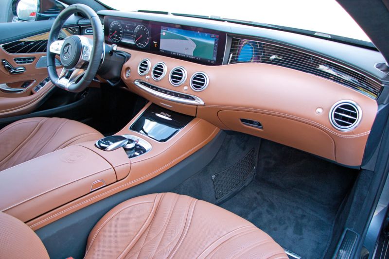 Bleiben wir gleich bei diesem Triebwerk. In der Liga über 600 PS wird die Luft dünn. Mit wenigen Ausnahmen tummeln sich hier die Supersportler von Manufakturen wie Ferrari, McLaren, Bugatti oder Lamborghini und eben auch das stärkste aller S-Coupés. Waren frühere AMG-Modelle oftmals reine Hecktriebler, ist mittlerweile in fast allen Modellreihen der 4MATIC-Allrad verfügbar. Macht auch Sinn, denn unglaubliche 900 Newtonmeter Drehmoment sind anders kaum zu bändigen. Wer die volle Leistung auskostet, hat nach nur 3,5 Sekunden 100 km/h am Tacho stehen, wurde das AMG Driver's Package geordert, ist erst bei 300 statt 250 km/h Schluss. Untermalt vom sonoren Brabbeln der Sportauspuffanlage wird schnell deutlich, dass sich der AMG vor den erwähnten Sportwagen-Exoten nicht verstecken muss. Zumindest beim Beschleunigen, denn in Kurven macht sich das hohe Leergewicht von knapp 2,1 Tonnen dann doch bemerkbar. Das Performance-Coupé kann aber auch völlig entspannt gleiten und unaufgeregt und nahezu lautlos beschleunigen, wenn der Fahrer das möchte. Übrigens: Wer denkt, dass beim Grundpreis von 230.850 Euro das Ende der Fahnenstange erreicht ist, der irrt. Für aberwitzige 323.940 Euro gibt's den AMG S 65 mit zwölf Zylindern und 630 PS. Der beschleunigt - da nur Hinterrad - sechs Zehntel langsamer (!) als der Achtzylinder und beweist, dass in dieser Liga andere Regeln gelten ... •