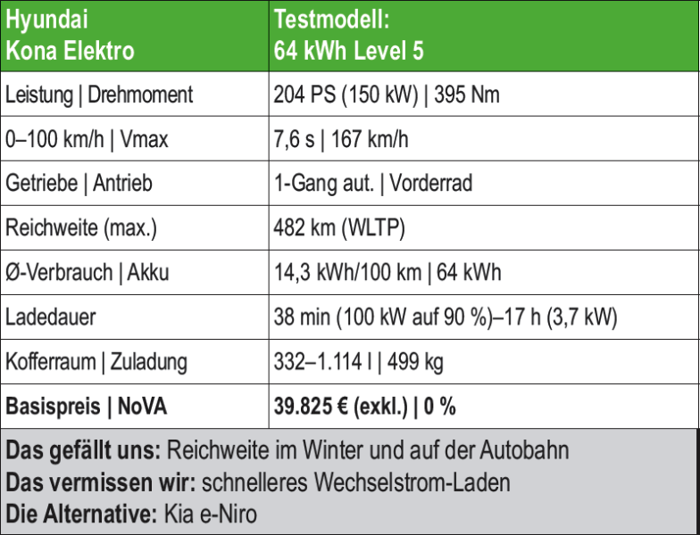 Der Hyundai Kona Elektro beweist, dass Elektroautos auch im Winter und bei Autobahntempo eine Alternative sein können.