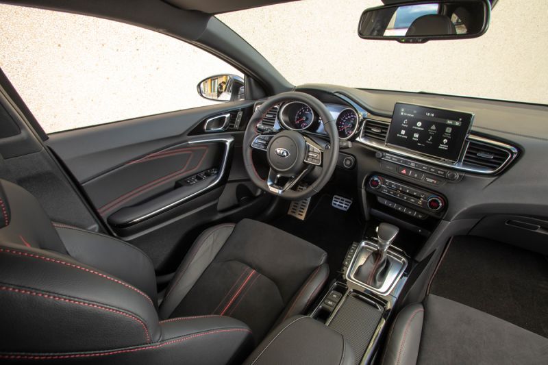 Wie ernst es Kia mit dem sportlichen Ansatz des ProCeed meint, konnten wir im 204 PS starken Topmodell GT ausprobieren. Dieses quittiert schon den Start mit einem launigen Röhren und schiebt vom ersten Tritt aufs Gaspedal ordentlich nach vorn. Im Vergleich zum bisherigen GT-Modell, das nur als Fünftürer erhältlich war, helfen zahlreiche Modifikationen, mehr Fahrdynamik zu erreichen. Dazu zählen die Tieferlegung um zehn Millimeter, optimierte Federn und Dämpfer sowie eine Lenkung, die sich tatsächlich weniger künstlich anfühlt als bisher. Beim kurzen Rennstreckenausflug zeigt sich der GT gut ausbalanciert. Und welche Rolle spielt der Ceed SW nun, wenn der ProCeed alle Köpfe verdreht? Ganz klar, der Kombi bietet den besser nutzbaren Kofferraum und einen Preisvorteil, dessen Größe wächst, wenn jene Linien gewählt werden, die unter der GT Line liegen.