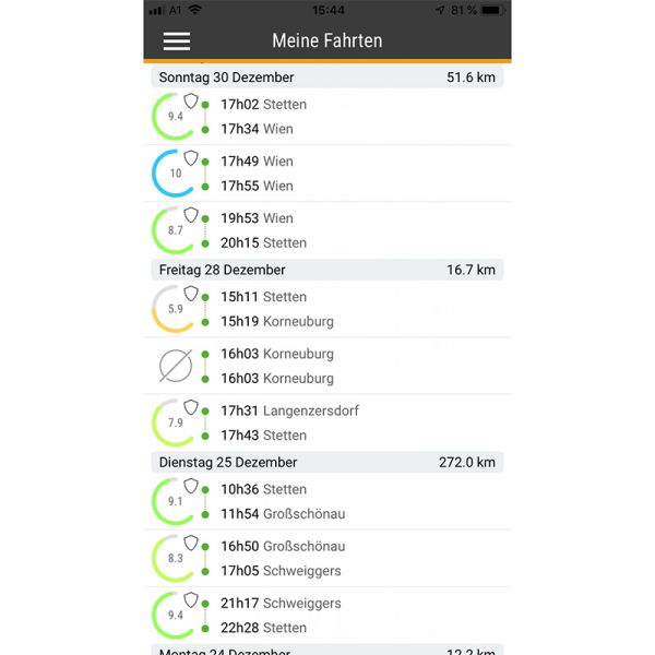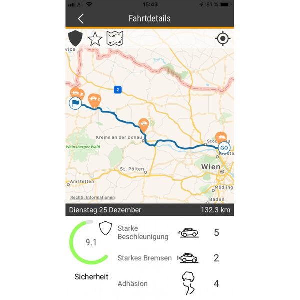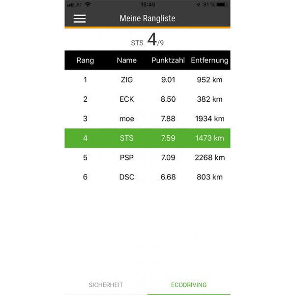 Denn wer Spritverbrauch und Schäden analysiert, der wird rasch feststellen, dass hier in so gut wie allen Unternehmen großes Einsparungspotenzial besteht. Mit dem Fitness-Tracker von fleet.tech hat der Fuhrparkleiter gleich mehrere Möglichkeiten. Zum einen - und das haben wir bereits in den ersten Tagen festgestellt - kommt es zu einem internen Wettbewerb zwischen den Fahrern. Denn jeder sieht auf dem eigenen Smartphone zwei Ranglisten, eine nach Effizienz und eine nach Sicherheit. Und automatisch wird dadurch der Ansporn geweckt, möglichst gut platziert zu sein. Zusätzlich können noch Prämien ausgelobt werden. Für die perfekte Fahrt werden zehn Punkte vergeben, wer zum Beispiel zu stark beschleunigt, zu flott in Kurven fährt oder zu stark bremst, bekommt Abzüge und kann sich auf der Karte auch ansehen, wo er die Punkte liegen hat lassen. Der sogenannte "Beacon" muss dabei lediglich sichtbar im Fahrzeug platziert und einmalig mit der App am Smartphone gekoppelt werden, ab dann funktioniert die Aufzeichnung automatisch.