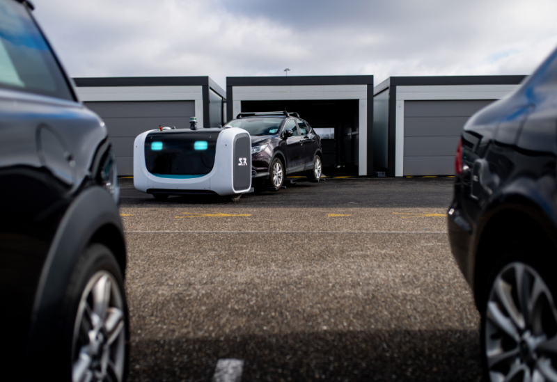 Der Flughafen Lyon Saint-Exupéry Airport hat seit ein paar Tagen Roboter im Einsatz, die die Autos parken.