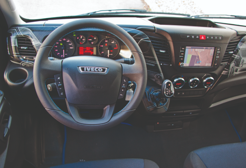 Mit Klimaautomatik, Touchscreen-Navi samt Bluetooth-Freisprecheinrichtung und der erwähnten Achtgang-Automatik war unser Testwagen nahezu perfekt ausgestattet, der komfortable Schwingsitz trug das seine zum Komfort bei. Die Preisliste des Iveco Daily CNG startet bei 30.900 Euro exkl.