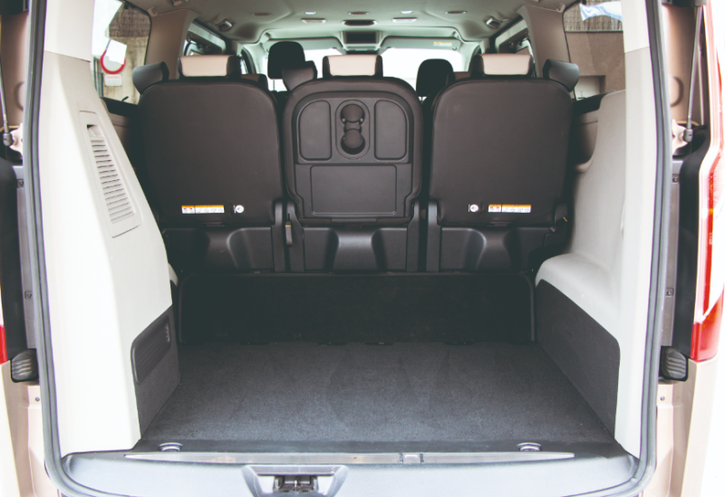 Was man auch im Innenraum sieht. Die zweifarbig gehaltenen Ledersitze sehen nicht nur gut aus, sondern bieten auch wirklich guten Sitzkomfort. Und im Unterschied zu manchem Mitbewerber sind auch alle sechs Sitze in Reihe zwei und drei als Einzelsitze ausgeformt und mit jeder Menge Bein- und natürlich Kopffreiheit versehen, verschieben lassen sie sich zwar nicht, dafür kann die zweite Reihe aber auch gegen die Fahrtrichtung montiert werden. Der 2.000 Liter große Kofferraum kann mit wenigen Handgriffen auf stolze 2.800 Liter erweitert werden, mit Gasdruckfedern unterstützt, lassen sich die Sitze in Reihe drei um- und danach vorklappen. Auch der komplette Ausbau des Gestühls ist natürlich möglich, aufgrund des Gewichts sollte man das aber besser zu zweit machen.