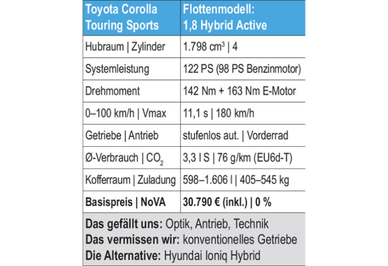 Zum Start der 12. Generation hat der kompakte Japaner auch seinen traditionellen Namen wieder. Technisch betrachtet blickt der Corolla aber klar nach vorn und nicht zurück. Der Dieselmotor wurde in Pension geschickt, unter der Haube gibt's künftig gleich zwei Hybrid-Versionen und einen Benziner klassischer Machart mit 1,2 Liter Hubraum und turboaufgeladenen 116 PS. Für die Verwendung im Fuhrpark sind freilich die beiden Teilzeitstromer prädestiniert. Die 1,8-Liter-Variante kommt auf eine Systemleistung von 122 PS (die 98 PS des Benziners sind dabei steuerlich relevant) bei einem Verbrauch von lediglich 3,3 Litern und einem CO2-Ausstoß von nur 76 Gramm pro Kilometer, der Zweiliter mit 180 PS Systemleistung (152-PS-Benziner) ist mit 85 Gramm nicht viel schlechter. Die Kraft wird dabei wie bisher über ein stufenloses CVT-Getriebe an die Vorderräder abgegeben, geblieben ist auch das systembedingte, höhere Akustikniveau bei voller Beschleunigung aufgrund der permanent hohen Drehzahl.
