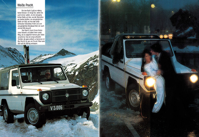 1998 hatte Magna International die Aktienmehrheit an Steyr-Daimler-Puch übernommen, die Aufteilung der Vertriebsregionen wurde zur Jahrtausendwende aufgelöst und die Fahrzeuge rollten seither serienmäßig mit Mercedes-Stern in Graz vom Band, schon bisher waren es etwa 90 Prozent der Produktion gewesen. Aufgrund der Fähigkeiten, aber auch der Preise, die über dem Durchschnitt lagen, war das Auto als Arbeitstier weniger verbreitet (die Version mit langem Radstand gab es auch als zweitürigen Kastenwagen!). Immer wieder versuchte das Werk, wie bei der 461er-Edition Pur, den G zu "entfeinern", womit auch der Preis niedriger wurde. Doch eigentlich waren Extravaganz, Leistung und Luxus zunehmend auch im Gelände angesagt. Schon beim Genfer Automobilsalon 1981 wurde eine Edelvariante auf 280 GE-Basis vorgestellt: der Mercedes Fuoristrada Villa d'Este, ein offener G mit kurzem Radstand drin, den Officine Introzzi in Como veredelten. Baur-Cabriolets und AMG-Dreiachser mit hoher Leistung folgten später.