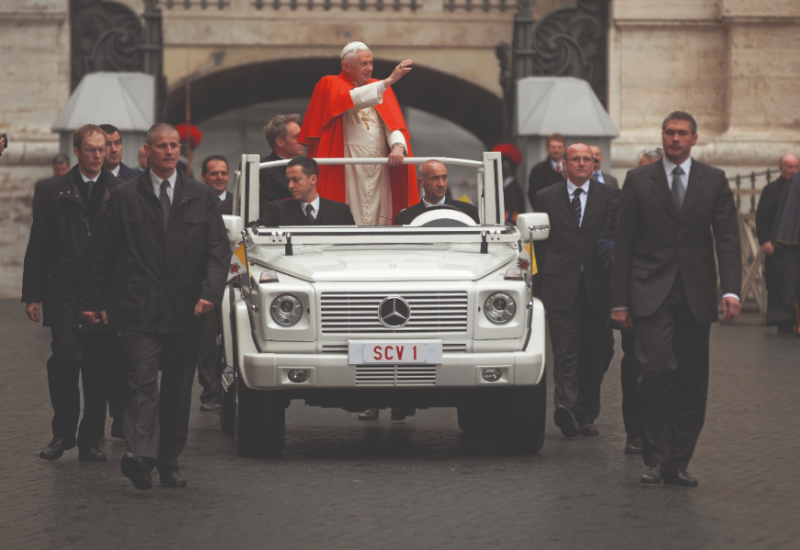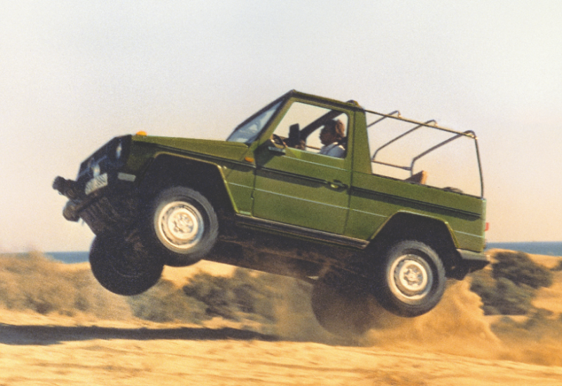 Die G-Klasse geht auf eine Gemeinschaftsentwicklung der Steyr Daimler Puch Fahrzeugtechnik und der Daimler Benz AG zurück und ist eigentlich der legitime Nachfolger des legendären Haflinger.