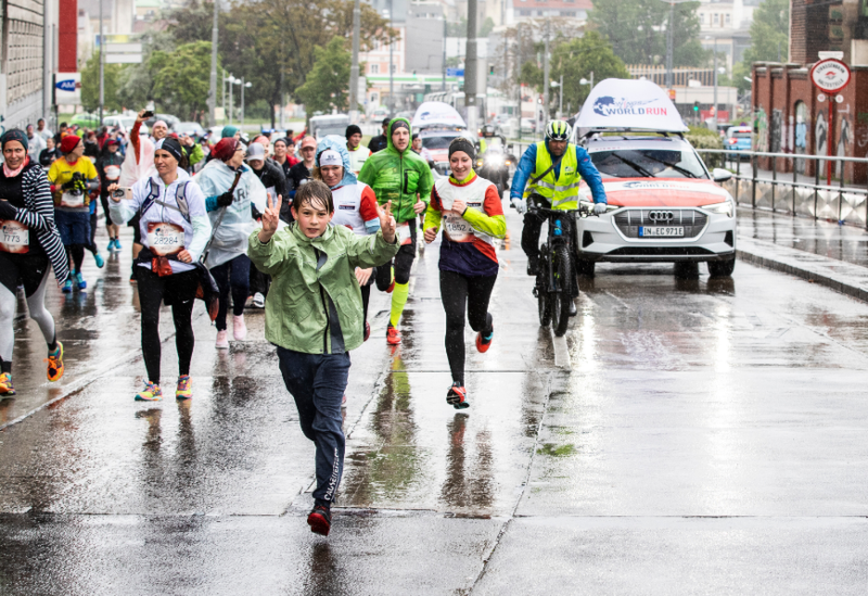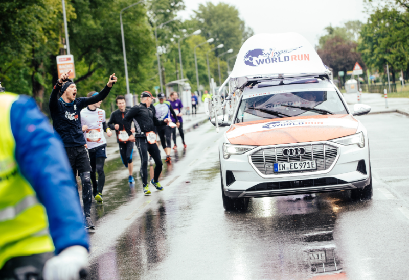 30 Minuten nach den 13.500 Teilnehmern machten sich Matthias Lanzinger und Matthias Walkner auf den Weg. Zum Start mit einer Geschwindigkeit von 14 km/h wurde alle 30 Minuten die Geschwindigkeit gesteigert und die Teilnehmer aus dem Rennen genommen. Am weitesten schaffte es Wojtek Baran mit 54,47 km – der e-tron war da bereits mit 34 km/h unterwegs.