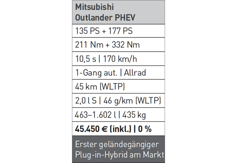 Ein bunter Vogel ist er nicht, der Outlander, der sein Antriebskonzept unverblümt bereits im Namen trägt. Der PHEV (Plug-in-Hybrid Electric Vehicle), andere Hersteller lassen das Marketing schmissige Wortschöpfungen kreieren, hat seit seiner Vorstellung in Paris 2012 zwar diverse Familiengesichts-Veränderungen mitgemacht, erscheint aber immer noch als sehr braves SUV der4,7-Meter-Klasse. Die Neuheiten stecken unter dem Blech, spürt man beim Fahren und findet man im Cockpit.