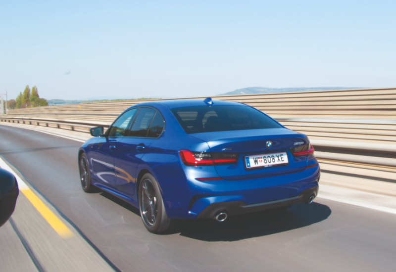 Wer das mit über 5.000 Euro nicht gerade günstige Sportpaket ordert, bekommt auch Zugriff auf die Außenfarbe Portimao-Blau, die unserer Meinung nach schönste Farbe für den neuen 3er. Wie überhaupt die Linienführung sehr gelungen ist. Die Nieren in verträglicher Größe, der Heckabschluss sportlich-elegant, so muss der Evergreen aus Bayern aussehen. Und in diesem Outfit ist auch schnell klar, warum ein Auto ein wichtiger Baustein in Sachen Mitarbeiter-Motivation sein kann. Erst recht, wenn der dann 25 Prozent - so groß ist der Sprung von 1,5 auf zwei Prozent nämlich - an Sachbezug sparen kann. Quasi zum Drüberstreuen sei nicht ohne Stolz vermeldet, dass das Triebwerk unter der Haube ein waschechter Österreicher ist und aus Steyr kommt. Doch dazu später. Nehmen wir erst einmal Platz im Testauto. An Extras wurde hier freilich nicht gespart, auch abseits des M-Paketswurden hier eifrig Häkchen auf der Liste der Optionen gemacht. Ein Muss sind die im Sportpaket enthaltenen Sportsitze, die mit ausziehbarer Schenkelauflage und einstellbarer Sitzbreite die perfekte Mischung aus Sport und Komfort darstellen. Das Platzangebot ist ordentlich, auch in Reihe zwei sitztman als größerer Passagier gut, der Kofferraum fasst wie beim Vorgänger 480 Liter, die sich durch das Umklappen der Rücksitzlehnen noch erweitern lassen. Auch ergonomisch gibt es nichts zu bekritteln, alles ist an seinem Platz.