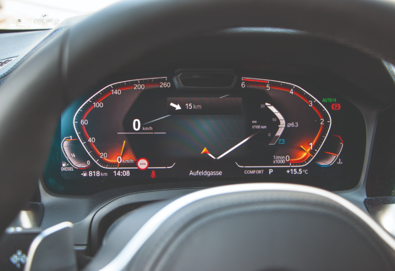 Umgewöhnen müssen sich eingefleischte BMW-Fahrer beim nunmehr virtuellen Cockpit. Verschiedene Modi erlauben etwa das Einspielen der Navikarte, die dann im Extremfall im Navi, im Head-up-Display und in den Armaturen gleichzeitig zu sehen ist, ein Overkill an Information. Weniger wäre an mancher Stellejedenfalls mehr gewesen, mit etwas Wehmut blickt man in die Zeit der analogen Zeiger zurück. Komplett umgestrickt wurden auch die iDrive-Menüs. Hier findet man sich nach kurzer Eingewöhnung aber gut zurecht, der Dreh-Schiebe-und Drück-Controller ist nach wie vor das Maß aller Dinge. Vorbildlich arbeitet auch die Sprachsteuerung, mit einem einzelnen Befehl ist etwa ein Navi-Ziel diktiert, das sofort vom System mit aktivierter Zielführung übernommen wird. Dass man mit dem Codewort "Hallo BMW" - Amazons Alexa lässt grüßen - nun auch in anderen Bereichen interagieren kann, ist zwar nett, aber oftmals unnötig. Schließlich ist ein Druck auf die Temperaturwahltaste weit einfacher als "Mir ist kalt" zu diktieren, um danach noch die Temperatur per Sprachsteuerung auszuwählen. Und so kooperativ wie Michael Knights K.I.T.T. ist das System bei noch keinem Autohersteller.
