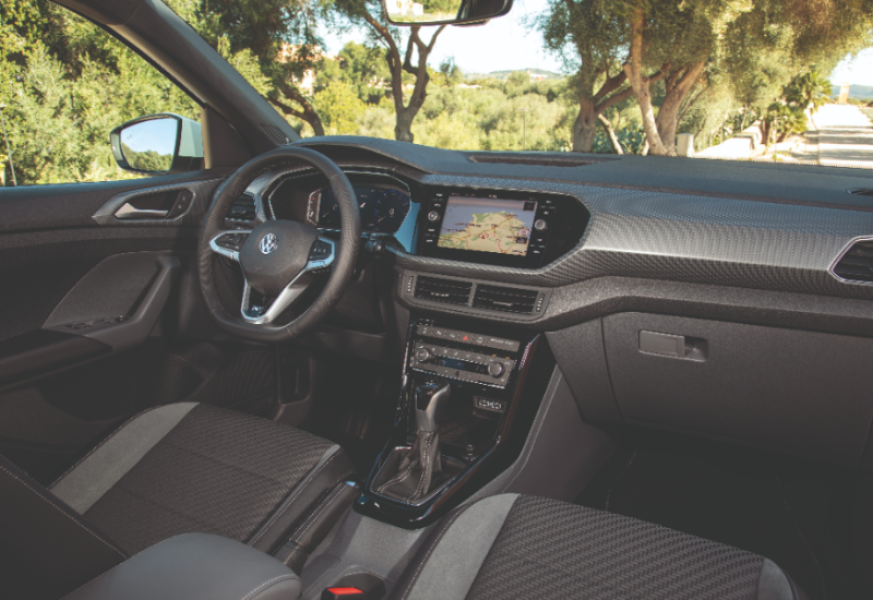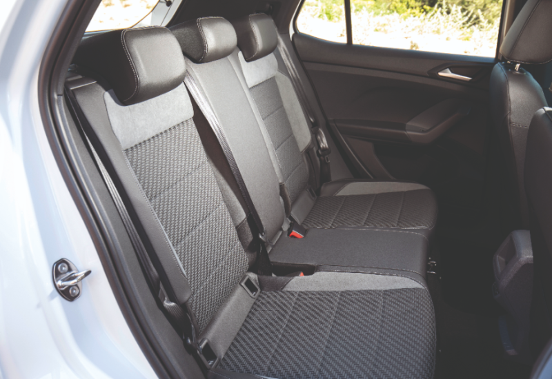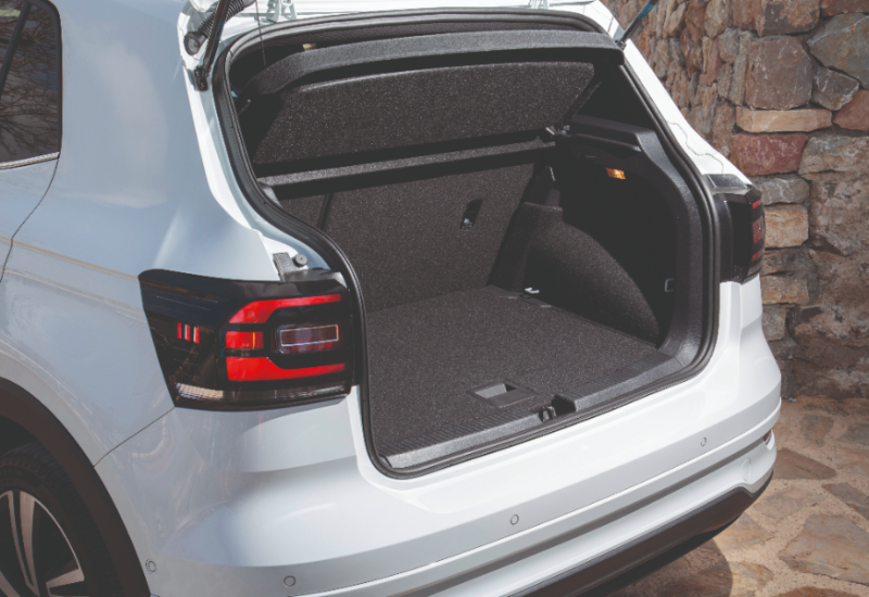 Die größte Überraschung am neuen T-Cross ist aber ohne Frage der Innenraum. Zumindest subjektiv wirkt er mitunter hochwertiger als im großen Bruder T-Roc, der für das eingesetzte Hartplastik bereits einige Medienschelte einstecken musste. Je nach Budget ist eine volle Vernetzung bis hin zur Smartphone-App möglich, auch ein feines Navi ist in der Kleinwagenklasse mittlerweile zu bekommen. Für einen echten Wow- Effekt sorgt das Platzangebot im Fond des kleinen Wolfsburgers. Selbst hinter großen Fahrern findet man mit knapp zwei Meter Körpergröße überraschend viel Bein- und Kopffreiheit vor. Der Clou ist die längs verschiebbare Rückbank, die je nach Bedarf mehr Kofferraumvolumen (385 bis 455, bei umgeklappten Rücksitzlehnen 1.281 Liter) oder eben mehr Platz im Fond freigibt. Verglichen mit Golf (380 Liter), Polo (351 Liter) und T-Roc (445 Liter) kann sich der Stauraum sehen lassen.