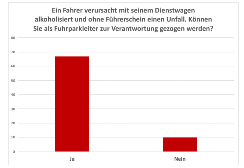 - Ein Fahrer verursacht mit seinem Dienstwagen alkoholisiert und ohne Führerschein einen Unfall. Können Sie als Fuhrparkleiter zur Verantwortung gezogen werden?