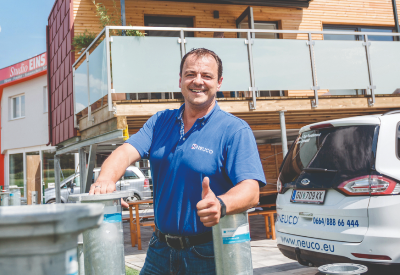 Mittlerweile ist Neuco Austria Europas führender Anbieter von Schraubfundamenten und weit über die Bundesgrenzen hinaus tätig. Für Zaun, Terrasse oder auch dreigeschoßigen Wohnbau dreht die in der Steiermark beheimatete Firma die Stahlschrauben in jeden Boden. Denn: "Wir können überall bohren", so Neuhold. Wenn der Boden beispielsweise nicht tragfähig ist, werden die Schrauben so weit verlängert, bis sie tragfähige Schichten erreichen. Vorteilhaft ist dies auch bei Felsboden. Neuco fundamentiert viele Almhäuser, da in den Fels vorgebohrt wird. In das Loch kommt sich verdichtendes Granulat und dort hinein die Schraube, ähnlich einem Zahnimplantat. Die Vorteile der Schraubfundamente sind vielfältig: keine Flächenversiegelung, bei Bedarf simpler und einfacher Rückbau, sauberes und rascheres Fundamentieren.