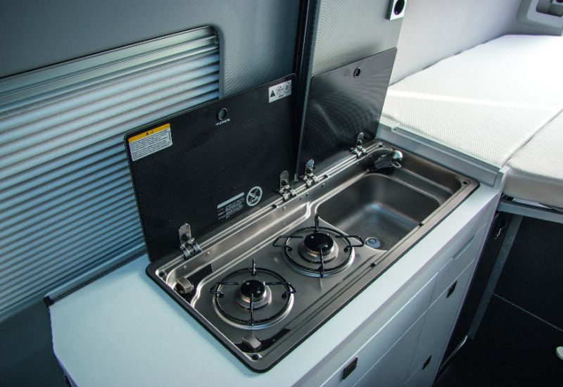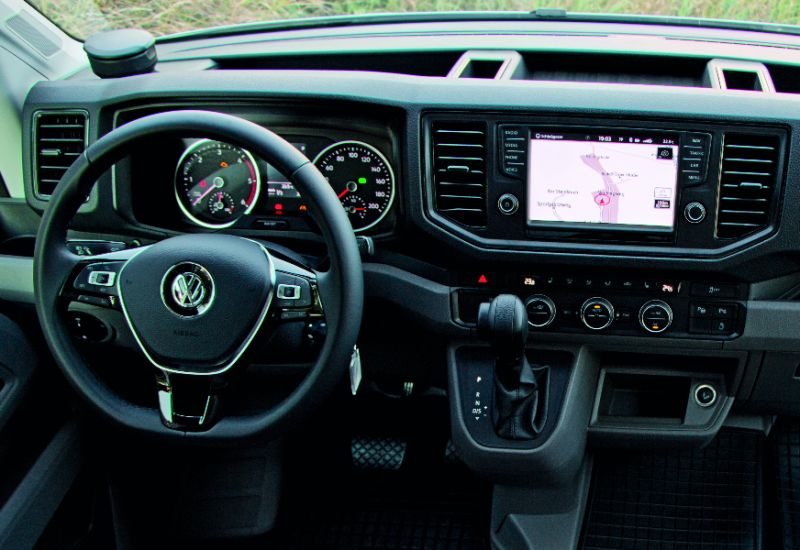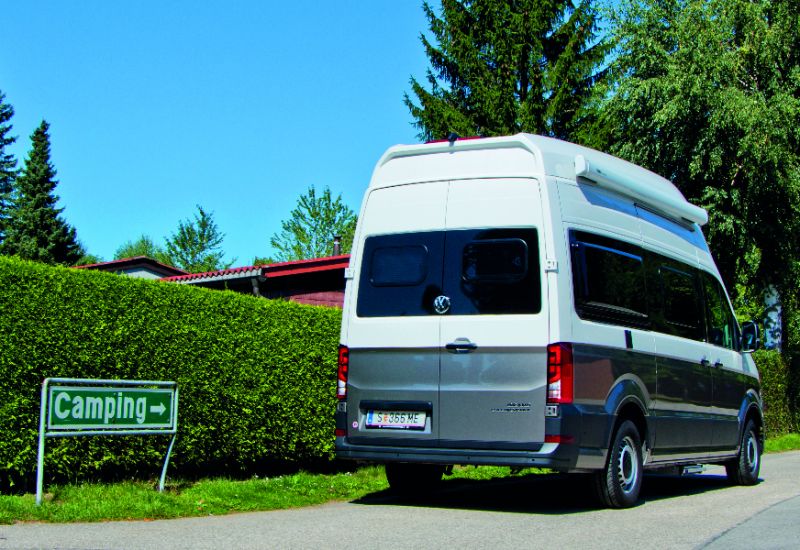Doch selbst bei voller Beladung und einem stattlichen Gesamtgewicht von 3,5 Tonnen hat das 177 PS starke Turbodiesel- Triebwerk leichtes Spiel. Erst recht in Kombination mit der serienmäßigen Achtgang-Automatik. Jedenfalls erstaunlich, wie leichtfüßig sich der Grand California bewegen lässt, auch die Höhe von 3,10 Metern (Achtung bei Durchfahrten!) macht sich bestenfalls bei Seitenwind bemerkbar. Ist es windstill, sind 130 km/h auf der Autobahn ein angenehmes Reisetempo, derTestverbrauch von knapp über elf Litern geht dafür ebenfalls in Ordnung. Volkswagen hat ein Sicherheitsfeature eingebaut, um in Kurven ein Kippen des hohen Fahrzeuges zu vermeiden. Überschreitet man in Relation zur Kurve die Geschwindigkeit, regelt das ESP und bremst sanft ab.