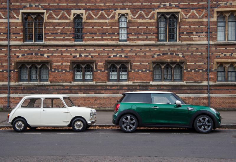 John Cooper widmete sich der gut drei Meter langen, einen Meter vierzig breiten und einen Meter fünfunddreißig niedrigen Kleinwagenikone derart intensiv, dass dies auch auf die schwächeren Modelle "mitzog", wenn Sporterfolge den Mini in die Schlagzeilen brachten. 1967 kamen die 1000er-und 1300er-Versionen der einzelnen Marken in den Verkauf, 1969 wurde die Modellbezeichnung "Mini" zur Marke, die BMW seit Anfang 2001 für die britischen Modelle verwendet. Die Produktion des Ursprungs-Mini endete im Jahr 2000 nach 41 Jahren und fast 5,39 Millionen Stück; ein Teil von ihnen wurdeals Lizenzbau auch in Italien (Innocenti), Spanien (Authi) und Portugal (IMA), Südafrika oder Australien gefertigt, zahlreiche mit längerem Radstand als Van, Estate oder Traveller. Ursprünglich für militärische Zwecke konzipiert war der Strandflitzer Mini Moke. Vor allem in Großbritannien wardie Mini-Technik auch als preiswerte Basis für Bausatzautos à la Marcos, Yak oder GTM beliebt.
