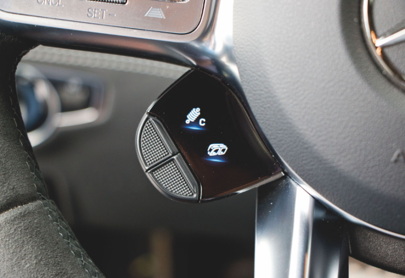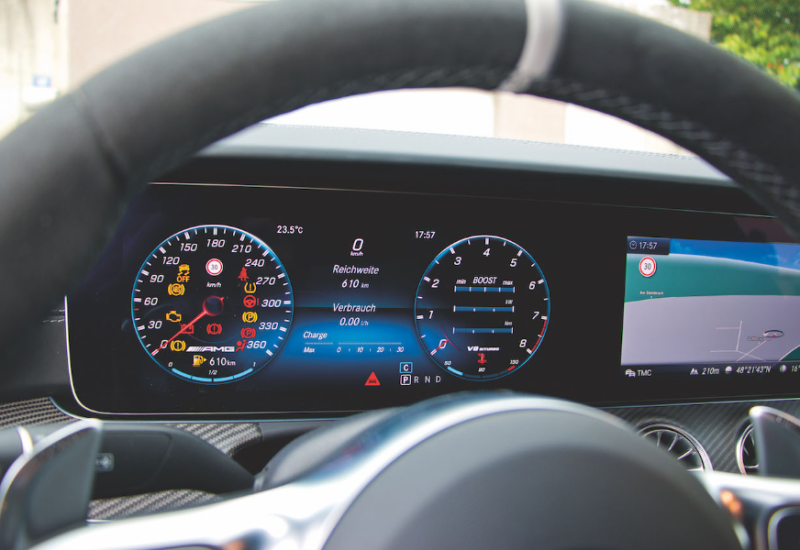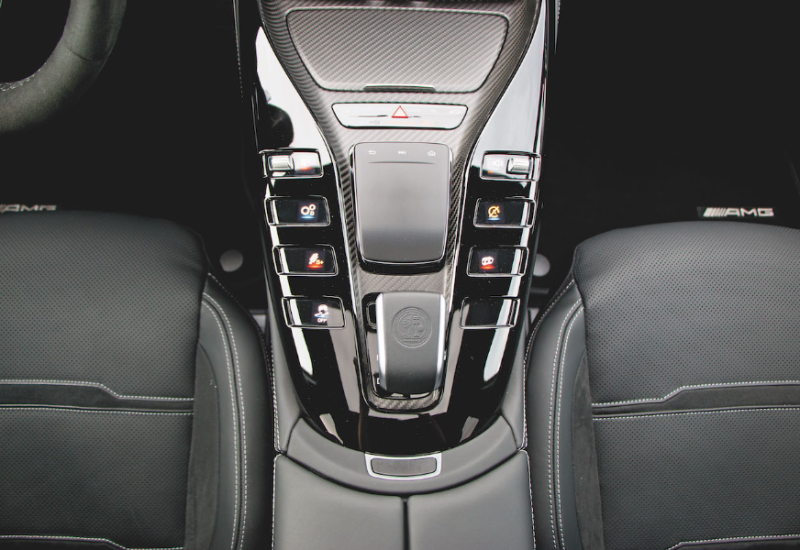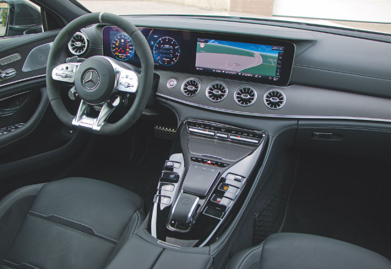 Innenraum? Ja, gibt's auch, wenngleich das in diesem Auto nur Beiwerk ist. Andererseits auch nicht, schließlich finden vier Personen ganz gut Platz, im Fond darf man freilich nicht zu groß gewachsen sein. Das Cockpit mit dem Widescreen kennt man aus Mercedes-Modellen von der A-Klasse aufwärts, die in die Mittelkonsole eingelassenen Tasten dürften hochwertiger ausgeführt sein. Am Ende des Tages aber schlichtweg egal. Habe ich Ihnen schon erzählt, wie es sich anfühlt, wenn der Achtzylinder loslegt?