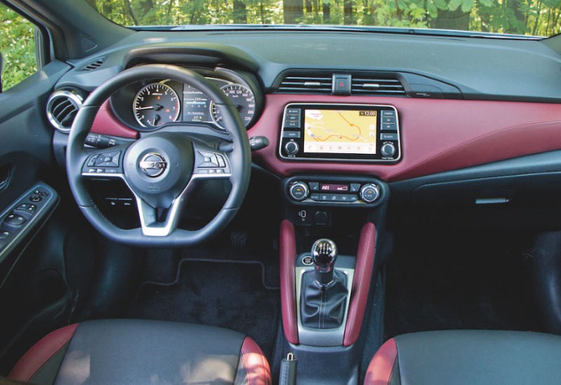 Nissan wirbt unter anderem mit Farbpaketen für Innen- und Außendesign. Im Innenraum unseres Testwagens stand "Inspiration Red" zur Ansicht - das Leder war echt, und ja, wir fühlten uns inspiriert, die zusätzlichen 938 Euro (inklusive) aufzutreiben. Sie auch?