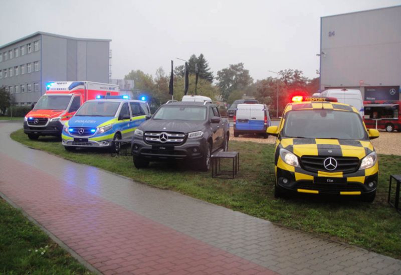 Bei der Leistungsshow "Clever Bodybuilder Solutions" im Daimler-Werk Ludwigsfelde wurden 34 Aufbauten aus neun Branchen gezeigt, die zum Teil auch auf demösterreichischen Markt erhältlich sind. Das Transporterwerk Ludwigsfelde bei Berlin ist für die rund 1.700 "offenen" Grundversionen des Mercedes-Benz Sprinter zuständig, die Daimler nun auch mit Front- und so wie bisher mit Heck- und Allradantrieb in 400 Farben fertigt: komplette Fahrgestell-/Kabinen-Modelle, Antriebsköpfe mit oder ohne Kabine beziehungsweise Fahrgestell, Teilkarosserien, Windlauf-Aufbauten, auch mit Heck- oder Allradantrieb, oder an der Rückwand oder am Dach offene Einfach-beziehungsweise Doppelkabine in allen drei Antriebskonfigurationen.