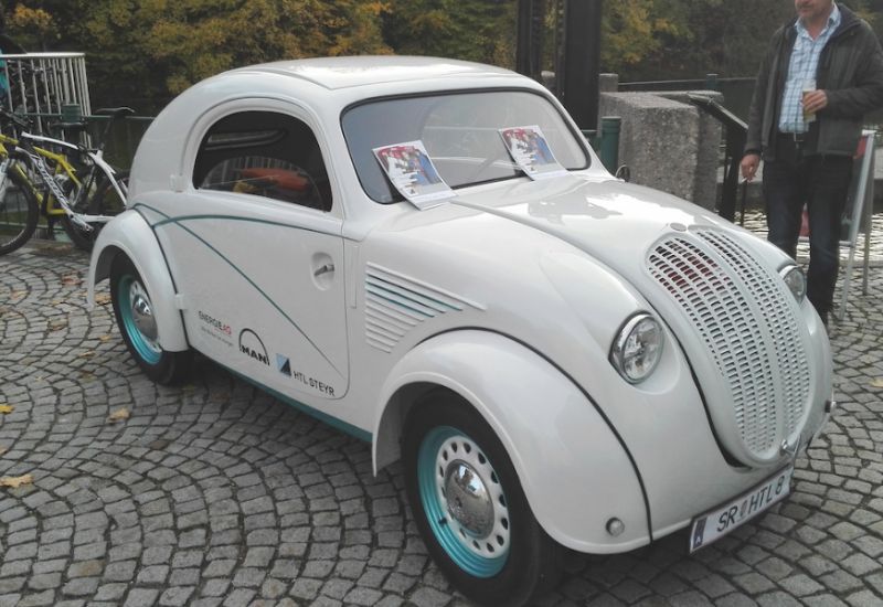 Auch als Elektroauto verliert der Klassiker aus Österreich nichts von seinem Kindchenschema. Das Modell aus 1936 wurde von der HTL Steyr in etwa 400 Arbeitsstunden auf den lokal emissionslosen Antrieb umgerüstet.