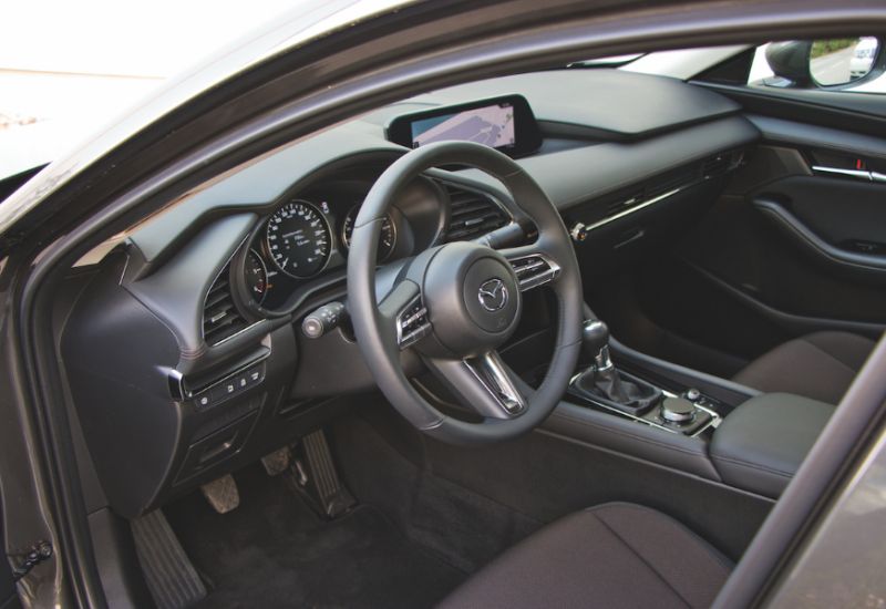 Die sind auch nicht notwendig, um die Qualität des Mazda3 in Szene zu setzen. Verarbeitung und Materialwahl sind über alle Zweifel erhaben und es braucht auch keine Ledersitze, um sich wohlzufühlen. Im Vergleich zu den Vorgängermodellen hat Mazda so manches entstaubt, allen voran das Navigations- und Entertainment-System, das sich mittels Controller in der Mittelkonsole oder Sprachwahl bedienen lässt. Besonders hervorzuheben ist das feine Head-up-Display, das die wichtigsten Parameter wie Geschwindigkeit oder Navi-Hinweise direkt in die Scheibe projiziert. Das findet sich normal nur in der Premium-Liga und sogar dort kommt es vor, dass die Infos auf eine ausfahrbare Plexiglasscheibe gespiegelt werden, kein Vergleich zum Mazda-System. Die Ausstattung lässt überhaupt fast keine Wünsche offen. Navi, Klimaautomatik, Totwinkelwarner, Sitze- und Lenkradheizung, Alufelgen und einiges mehr sind Standard in der Comfort+-Ausstattung, der in Verbindung mit dem 116-PS-Turbodiesel aufgerufene Preis von 28.690 Euro geht schwer in Ordnung.