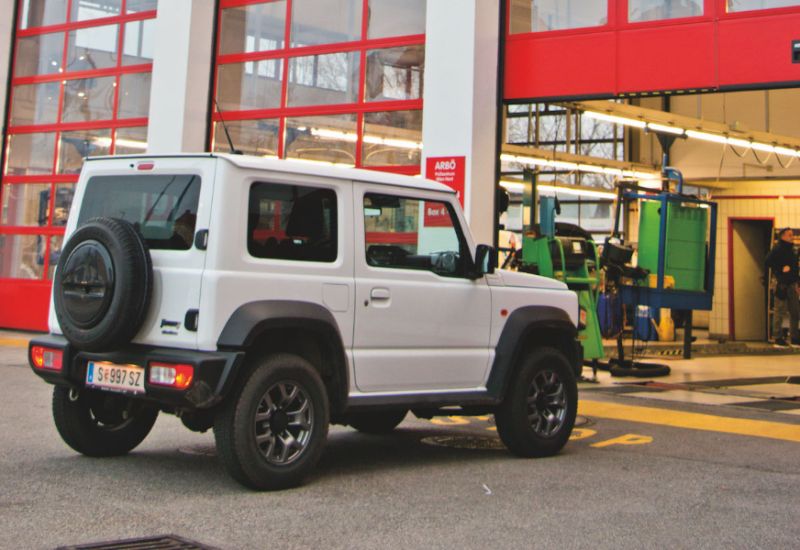 Der Ankaufstest des ARBÖ hilft beim Gebrauchtwagenkauf. Unter die Lupe genommen werden mehr als 150 Positionen, mehr als beim "Pickerl", wie man betont. Beim Jimny wurden nach exakt 13.403 Kilometern drei leichte Mängel festgestellt: ein niedriger Siedepunkt der Bremsflüssigkeit, die leichte Schiefstellung des lenkrades sowie "leicht schuppige" Reifen. Gleichzeitig meldete das Diagnose-Gerät zwei Fehler im Speicher, die Techniker empfahlen einen Werkstattbesuch zur Abklärung.