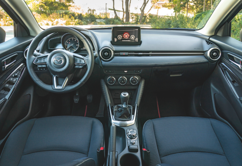 Auch innen wurde das Lenkrad nicht neu erfunden. An Form und Aufbau wurde nichts geändert, doch bei vielen kleinen Details an den richtigen Stellen nachgebessert. Die Isolierung wurde überarbeitet und liefert nun Geräuschniveaus mindestens auf Kompaktklassen-Niveau. Zudem wurde die Geometrie der Frontsitze optimiert, um eine angenehmere Sitzposition zu bieten. Das bedeutet, dass gerade in Kombination mit der angenehmen Geräuschkulisse auch in diesem Kleinwagen längere Etappen ihren Schrecken verlieren. Zumal auch beim Fahrwerk nachgebessert wurde, was den Nippon-Zwerg ebenso ein anständiges Stück erwachsener wirken lässt. Seinen verspielten Charakter hat er dennoch behalten: Dank Mazdas mit Bremseingriffen arbeitendem Torque-Vectoring-System, der direkten und gefühlvollen Lenkung und dem knackigen Getriebe macht auch so manch kleine Kurvenhatz Freude.