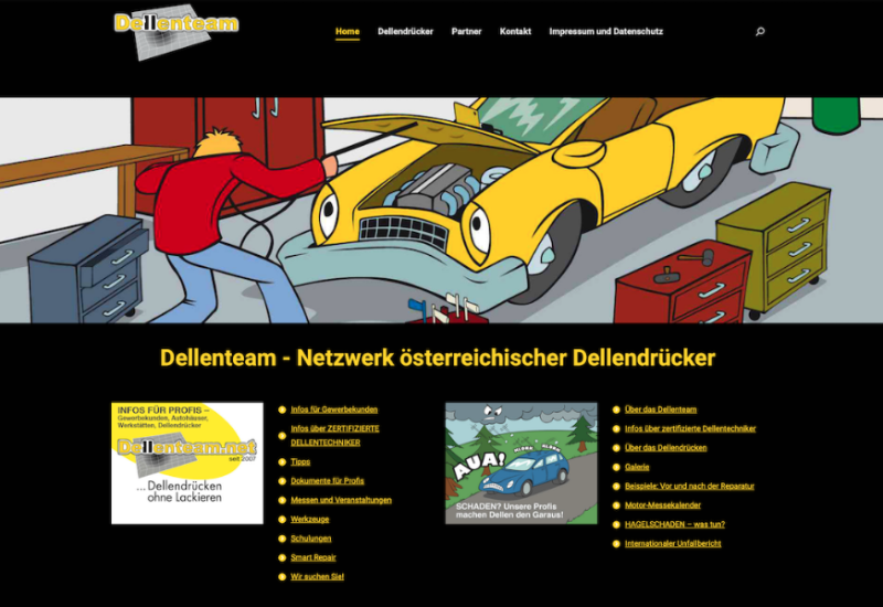 Seit 2007 gibt es in Österreich Dellenteam, die größte Vereinigung von Dellenspezialisten. Es ist kein Franchise oder Vermittlungssystem, alle Mitglieder sind unabhängige Unternehmen. Dazu gehören selbstständige Dellentechniker, die mobil vor Ort arbeiten, wie Michael Berauer und Martin Kern, Martin Brunner, AntonHager, Peter Schaufler, Andreas Schedl und Edwin Wetzel. CAR-REP-Profiteam Denk beschäftigt mehrere Dellentechniker und ist in Österreich und europaweit mobil tätig. Karosseriefachbetriebe wie Clark's Karosserie-Dienst, Janiba Karosserie&Lack, Niegelhell Lack- und Karosserieexperten, Karosserie Puck, Karosserie Schaufler und Auto Wetzel bieten Fullservice im Bereich Unfallreparatur, Lackieren u. v. m. Das neueste Mitglied beim Dellenteam - Philipp Hirschhofer, Glanzvoll Auto-Aufbereitung -ist u. a. auf Kleinschadenreparatur, Autopflege und Folierung von Scheiben und Karosserie spezialisiert. Im Netzwerk werden regelmäßig Maßnahmen für Weiterbildung organisiert, wie beispielsweise die Hochvolt-Schulung HV1 im Frühjahr 2019. Dellentechniker haben es immer öfter mit Elektro- und Hybridautos zu tun, darauf sind die Dellendrücker aus dem Dellenteam bestens vorbereitet.