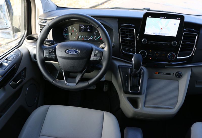Leben lässt es sich in dem achtsitzigen Bus nämlich wie Gott in Frankreich: Das Gestühl ist außerordentlich bequem, das Platzangebot überschwänglich großzügig und die serienmäßigen Komfortfeatures wie Spurhalteassistent, Tot-Winkel-Warner, Rückfahrkamera und Parkpiepser nehmen langen Strecken und engen Parklücken den Schrecken. Zugegeben: Der Wendekreis des 5,3 Meter langen Bus ist gefühlt riesig und gerade nach dem Kaltstart gibt sich der Vierzylinder-Diesel von der ruppigen Seite, aber einmal daran gewöhnt beziehungsweise warmgefahren, wird man richtig warm mit dem Tourneo Custom.