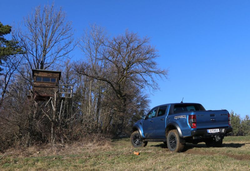 Es ist ein Auftritt wie einer von Chucks Arschtritten: Der Ranger Raptor ist mit 5,40 Meter Länge, deutlich über zwei Meter Breite und 2,5 Tonnen Gewicht ausgesprochen eindrucksvoll. Da Pick-ups in Amerika traditionell als landwirtschaftliche Nutzfahrzeuge gehalten werden, sei der Hinweis gestattet, dass ein Einsatz am Bio-Bauernhof die einzige Chance ist, dass der Laster je ein Öko-Siegel bekommt.