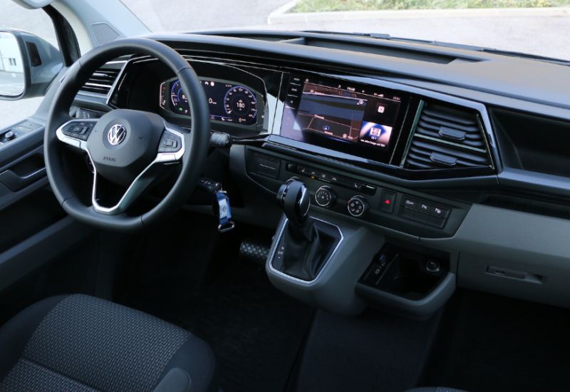Das Ladevolumen hinter der durch eine Glasscheibe abgetrennten Rücksitzbank liegt bei 3,5 Kubikmetern und über einer Tonne Zuladung. Sollte das nicht reichen, gibt es noch die Variante mit langem Radstand, die es dann auf 4,4 Kubikmeter bringt. Konzeptioneller Nachteil: Längere Gegenstände lassen sich nicht im Laderaum transportieren, eine Durchlademöglichkeit besteht nämlich nicht. Abgesehen davon zeigt sich der T6.1 Kastenwagen Plus aber als feiner Allrounder, der einen komfortablen Innenraum mit einem unempfindlichen Laderaum verbindet.
