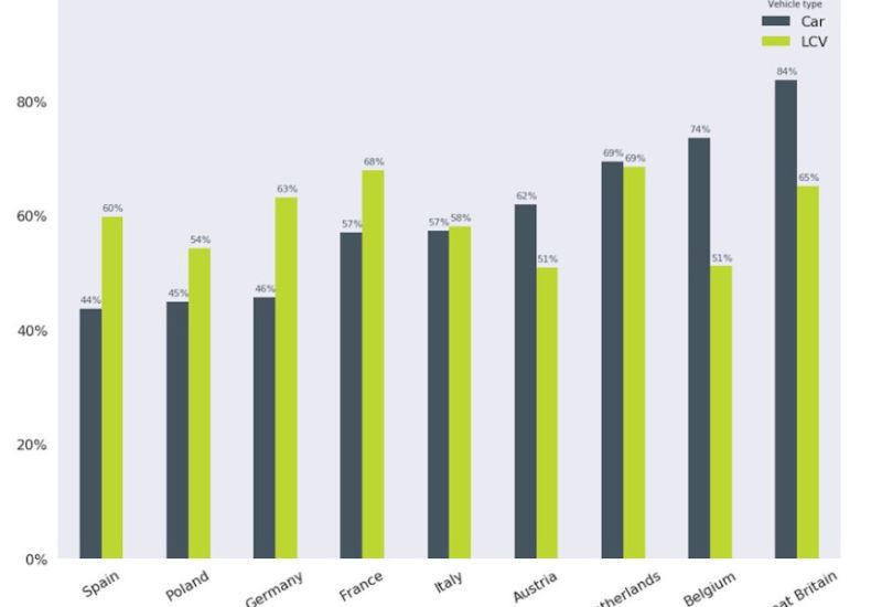 Neue Grafiken belegen, dass der Prozentsatz jener Fahrzeuge, die in kommerziellen europäischen Fuhrparks durch Elektroautos ersetzt werden können, annähernd gleich hoch ist. Sowohl bei PKW als auch bei LNF liegt dieser Wert bei 60 bis 61 Prozent.