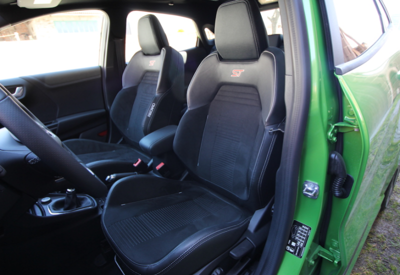 Aber bei den Sportversionen konnte man Ford noch nie etwas vorwerfen und entsprechend selbstbewusst tritt das Topmodell der Baureihe auf. Der schnelle Puma protzt mit muskulösen Schürzen, riesigen 19-Zoll-Rädern, einem Auspuff, der sein fröhliches Dreizylinderlied singt und in unserem Fall dem knalligen Furious-Grün, das 1.000 Euro extra kostet. Innen umklammern einen kräftig konturierte Recaro-Schalensitze, die aus gutem Grund verbaut sind. Schließlich passte Ford das Fahrwerk dem neuen Leistungsspektrum an. Und tatsächlich: Gemeinsam mit der punktgenauen Lenkung carvt es sich durch Kurven, als wären die Grenzen der Physik ein wenig dehnbarer als gedacht. Kein Wanken. Keine Unsicherheit. Es bleibt nur der ungewohnte Eindruck, so hoch zu sitzen und dennoch mit hohen Fliehkräften zurecht kommen zu müssen. Ungewohnt, aber cool!