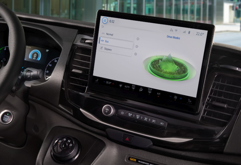 Der neue E-Transit führt das neue Kommunikations- und Entertainmentsystem Ford SYNC 4 in die europäische Nutzfahrzeug-Palette von Ford ein. Für die Nutzer bedeutet dies die doppelte Rechenleistung im Vergleich zur Vorgängergeneration Ford SYNC 3. Die Steuerung erfolgt über einen einfach zu bedienenden 12-Zoll-Touchscreen. Die neue, mit der Cloud verbundene Navigationsfunktion1 von Ford SYNC 4 kann unter Berücksichtigung der Verkehrssituation, der Lage von Ladestationen und weiteren Parametern effiziente Routen planen. Eine intelligente Reichweiten-Vorschau berücksichtigt Echtzeitdaten zu Fahrgewohnheiten, Wetter und Straßenbedingungen zur möglichst exakten Angabe der verbleibenden Batteriekapazität. Verfügbar ist zudem eine erweiterte Sprachsteuerung sowie eine Anbindung an Amazon Alexa2, damit der Fahrer bei der Übermittlung von Kommandos nicht die Hände vom Lenkrad nehmen muss.