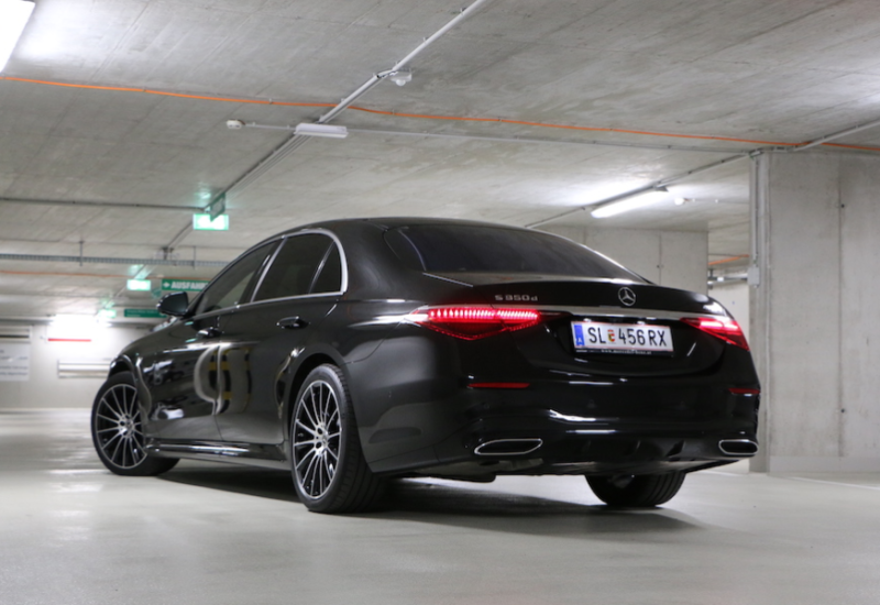 Die S-Klasse von Mercedes war schon immer ein besonderes Stück deutscher Ingenieurskunst. Ein Fahrzeug, mit dem man oftmals schon Maßstäbe in Stuttgart gesetzt hat, um das man von manch anderer Marke beneidet wurde. Und ein Auto, das technisch von A bis Z zu überzeugen wusste. Dass unter der wuchtigen Haube unseres Testwagens ein – man verzeihe den Ausdruck – ordinärer Dieselmotor seine Pflicht tut, überrascht zunächst. Kein Hybrid, kein Plug-in und auch kein E-Antrieb, der Selbstzünder ist im S 350 d auf sich allein gestellt. Und er macht seine Sache schlichtweg formidabel. Mit 286 PS hat er mehr als ausreichend Power, akustisch hält sich der Sechszylinder so zurück, wie man es in einer S-Klasse auch erwarten darf. An der Tankstelle dann eine echte Überraschung! Knapp unter sechs Liter sind für ein Auto dieser Größenordnung samt Allradantrieb eine Wucht, Hut ab! Nicht weniger beeindruckend ist der Wendekreis von 10,9 Metern, wenn man sich – und das ist keine Empfehlung, sondern schon fast ein Auftrag – für die Allradlenkung entschieden hat. Wie man auf dem rechten Bild sieht, ist der Lenkwinkel an der Hinterachse deutlich sichtbar und lässt die S-Klasse in einem Zug wenden, wo sich manch Kompakter schwer tut. Und auch die Auf-und Abfahrten von Parkhäusern werden fortan nur milde belächelt.